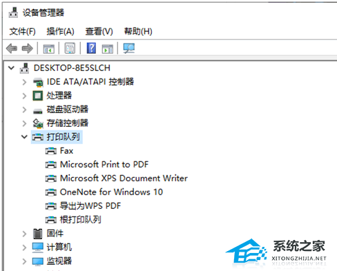 2. 设备管理器窗口中,找到并点击展开【打印队列】,查看是否有问号或叹号的设备未安装,如果有,可以通过打印机官网下载对应型号,以及对应的系统版本的驱动程序进行安装,确保打印机驱动正常安装;