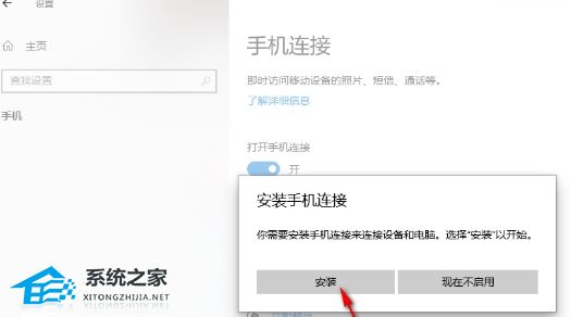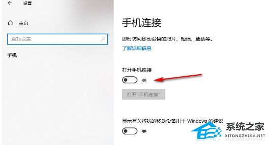 3. 将【打开手机连接】下方的开关按钮点击启用。