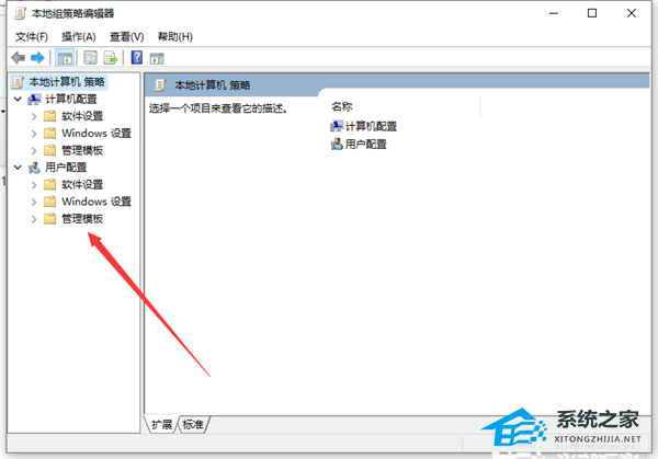 2. 打开组策略编辑器,然后依次选取“用户配置”. “管理模板”。