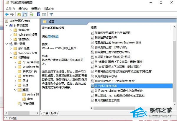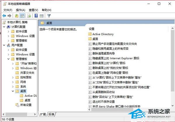 2. 进入到组策略编辑器后,依次点击左侧栏中的“用户配置——管理模板——桌面”。