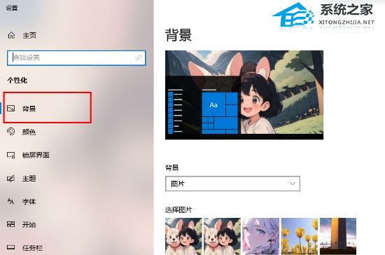 2. 打开设置桌面背景的窗口,在左侧的位置点击【背景】。