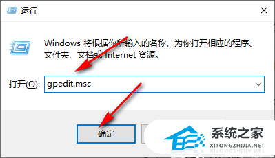 1. 按Win+R键盘组合键打开“运行”窗口,输入 “gpedit.msc ”点击确定。