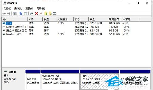 4. 强制关机之后重新启动电脑,然后进入磁盘管理查看是否是因为空间不足造成的死机。