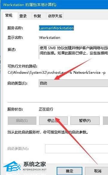 3. 在打开的编辑服务属性窗口中,查看一下当前服务是否运行,如果没有运行的话,点击启动按钮,运行该服务。