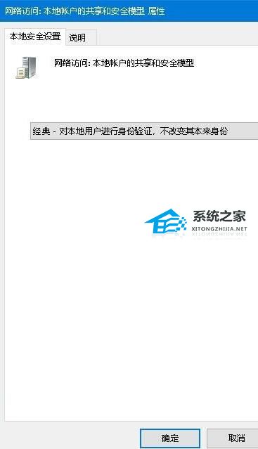 3. 在右侧的窗口中找到并双击“网络说:本地帐户的共享和安全模式”设置项,在打开的编辑窗口中选择“经典:对本地用户进行身份验证,不改变其本来身份”菜单项即可。