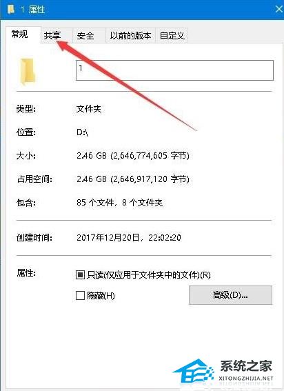 1. 右键点击共享的文件夹,在打开的属性窗口中,点击“共享”选项卡。