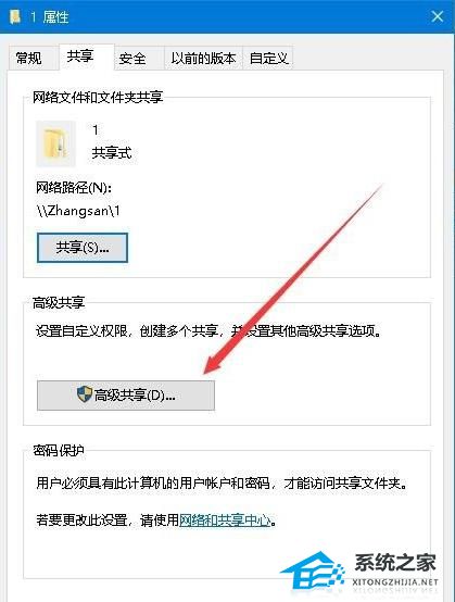 2. 在打开的共享设置窗口中,点击“高级共享”按钮。