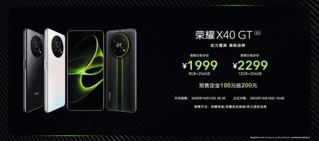 目前“实力霸屏,满帧战神”的荣耀X40 GT已开启预约:8GB+256GB版本首销到手价1999元、12GB+256GB版本首销到手价2299元,10月13日20:30正式预售,10月18日10:08开售,用户可前往荣耀商城、荣耀亲选商城及各大授权电商进行选购。