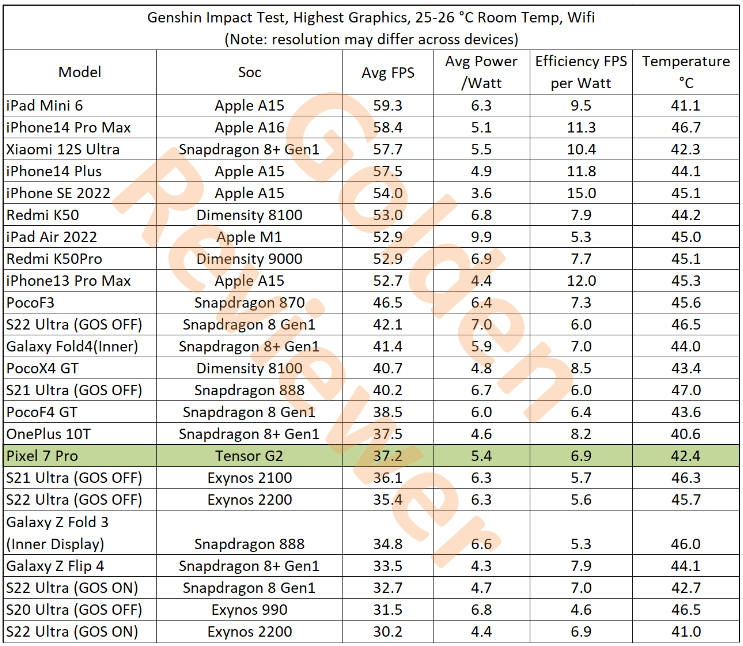 谷歌 Pixel 7 Pro《原神》实测令人失望:Tensor G2 堪称 Exynos2100 换皮,还不如骁龙 870