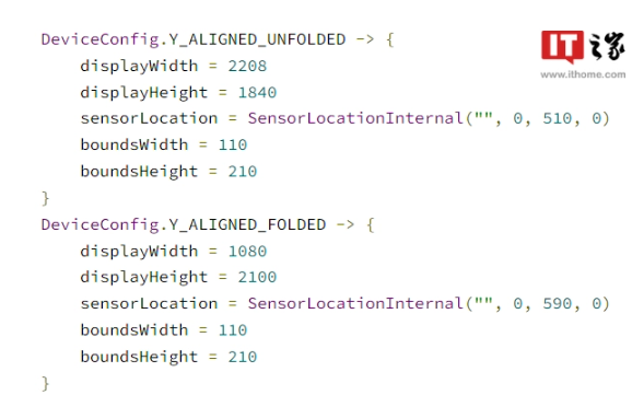 其中一个配置为“Y_ALIGNED”,意味着侧边指纹传感器位于左侧或者右侧,还具有“UNFOLDED”和“FOLDED”两种配置,预计是 Pixel 折叠屏手机采用的方案。