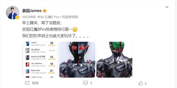 最火的真全面屏!红魔8 Pro在酷安热度第一:边框比iPhone 14 Pro更窄