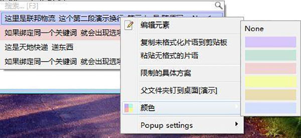 点击的PhraseExpress的系统托盘图标,鼠标左键从弹出菜单中选择所需词组。