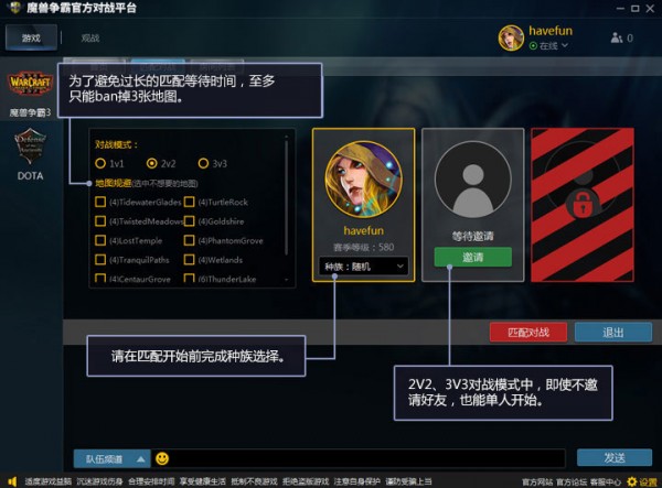 选择模式 - WarIII匹配对战。