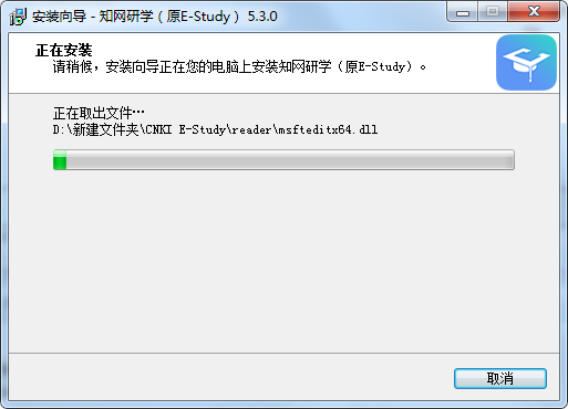 8、知网研学官方版正在安装,耐心等待一下。
