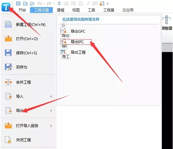 1、首先,打开GTJ工程,导出IFC文件;