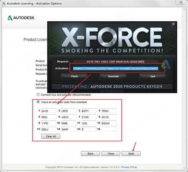 16、将之前复制好的申请号复制到注册机Request中,再点击Generate得到免费码;