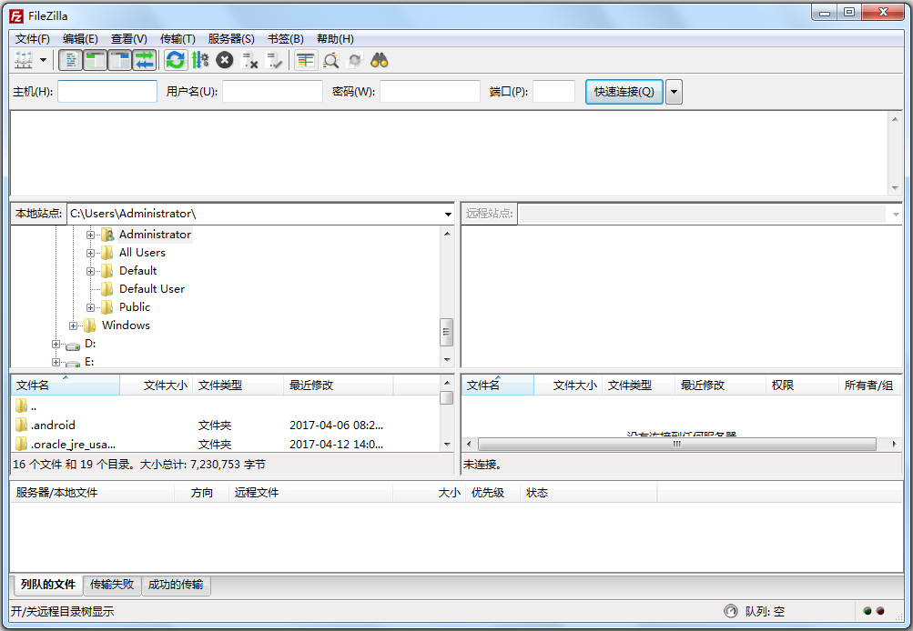 FileZilla自带功能强大的站点管理器和传输队列管理。