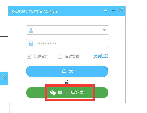 2. 客服端登录界面选择微信一键登录,微信扫码,关注公众号即可登录。