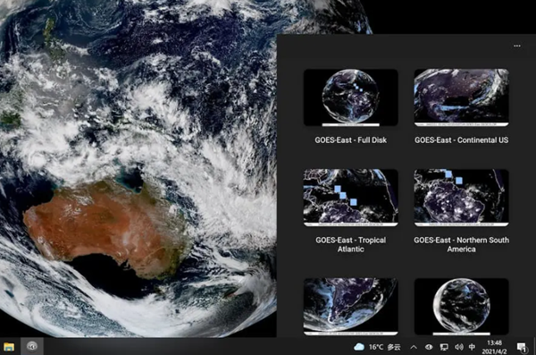 每20分钟至1小时下载一次新图像(取决于图像大小),在您的桌面上提供最新的地球视图。