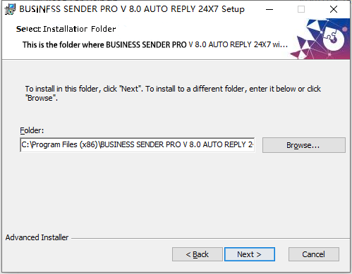 3、双击BUSINESS SENDER PRO V 8.0 AUTO REPLY 24X7.msi安装,安装位置,如图所示。