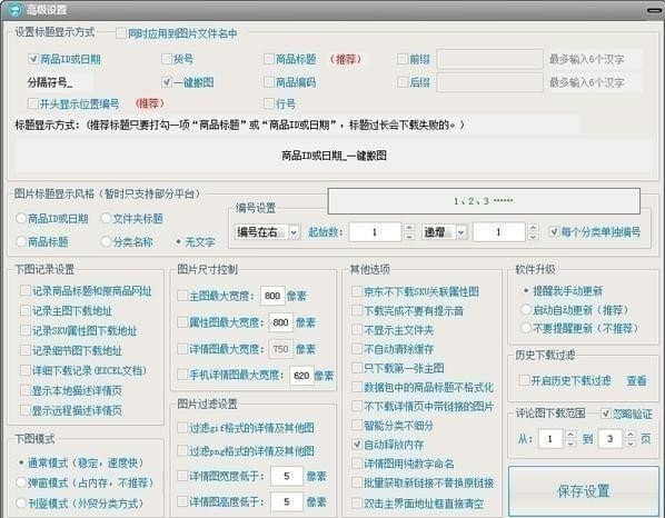 用户可以自己设置下载后文件夹的名称、文件夹归类的层级数量、文件名称等,也可以设置是否导出下载记录、控制图片大小、过滤重复图片等等个性化设置。