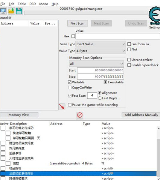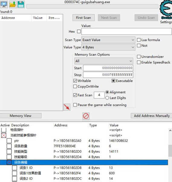 打开游戏,然后用ce修改器打开下好的ct就会出现如下画面: