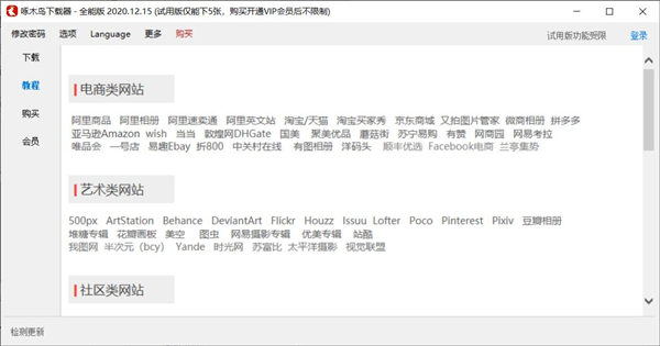 软件可以先试用,便于您了解功能和测试,试用版每次可下载5-8张图片,购买开通会员后无限制。基本操作请参阅右上角的教程 。