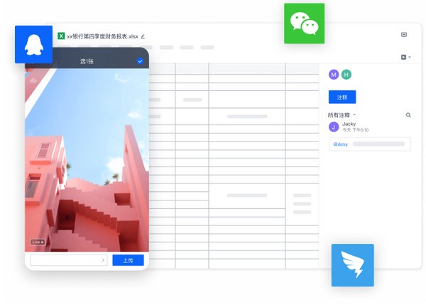 基于文件内容进行讨论,通过消息传递讨论要点,@功能方便提醒关注。