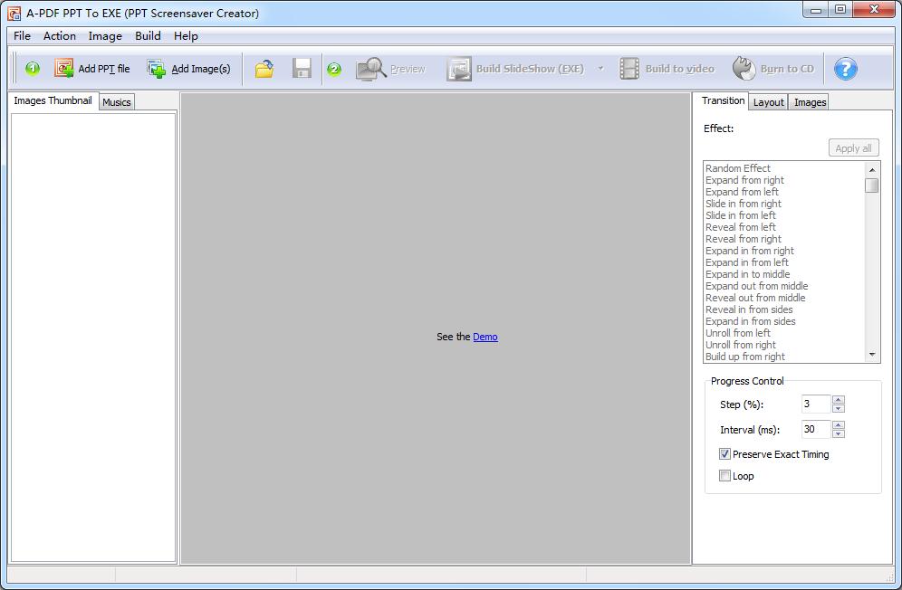 A-PDF PPT to EXE是一款相当优秀的PPT转EXE软件,软件拥有强大的功能,软件能够将PPT文档转化成EXE可执行文件,包括构建幻灯片、构建到视频和刻录到CD等功能。