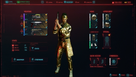 赛博朋克2077所有金色服装和武器存档