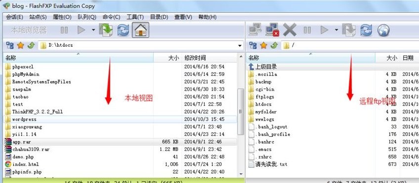 连接上站点之后,确认好本地目录中需要上传的文件位置,再在远程目录选取上传目录位置。