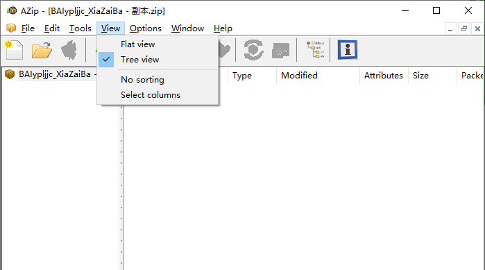 7. 您可以在视图菜单下调整软件的显示视图:平面视图,树视图,无排序,选择列。