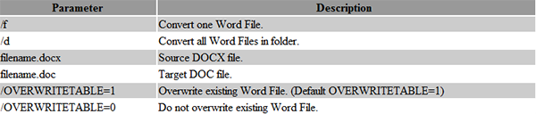convertdocx.exe / d C: Downloads D: File / OVERWRITETABLE = 0。