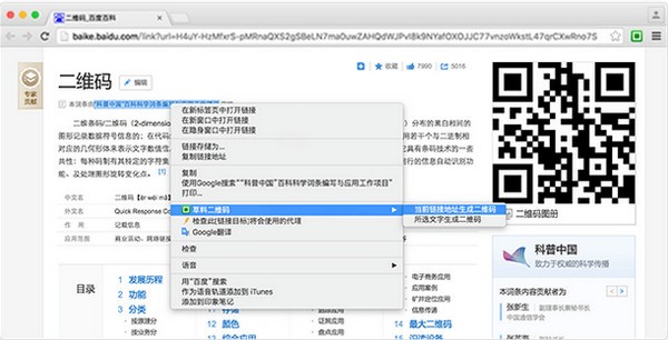 在该链接上点鼠标右键,选择“当前链接地址生成二维码”,就可以用该链接生成二维码图案。