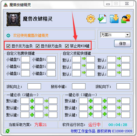 3、魔兽改建精灵共有26个方案,要保存此方案请按保存键。