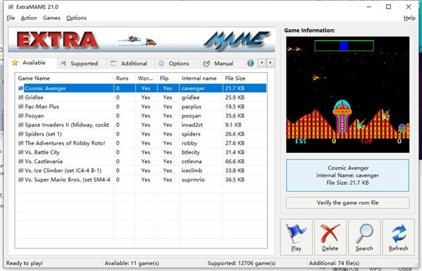 ExtraMAME中文安装版超赞的哦,是个超级好用的MAME模拟器!它能让大家在电脑上轻松畅玩各种经典的老街机游戏,而且还能跟所有MAME游戏完美兼容哦!想要试试的小伙伴们快点来下载体验吧!