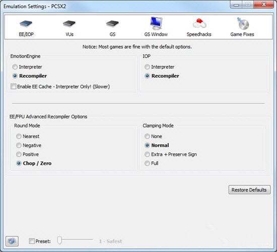 现在,你可以操作EE的循环速率以超频和降频情感引擎的R5900核心CPU时钟速度。滑动条的负值让你减少时钟速度,正值刚好相反地有效提升时钟速度。