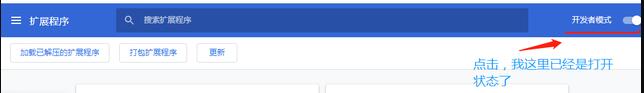 3、打开扩展程序页面的“开发者模式”;