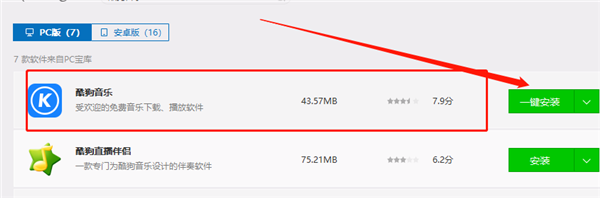 三、根据相关关键词,列出相应的软件,查找“酷狗音乐”,点击以下“单按钮安装、
