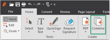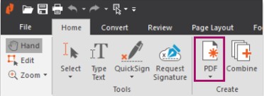 1、通过在“主页”选项卡下的“创建”部分中选择“ PDF”来创建新的PDF。