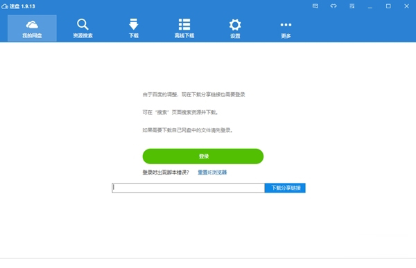 速盘与百度网盘客户端一样支持离线下载,使用离线下载功能必须登录百度网盘账号。