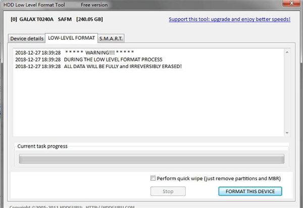 想要给硬盘进行低级格式化又不怎么怎么操作?系统格式化又都是高级格式化,完全满足不了我们的需求。所以你需要这款工具Hard Disk Low Level Format Tool,一款小巧轻便的低级格式化的工具,它支持IDE硬盘、移动硬盘、SATA硬盘,使用方便。