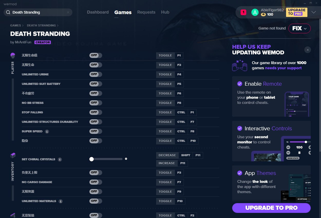 死亡搁浅二十一项修改器 V1.01 英文安装版