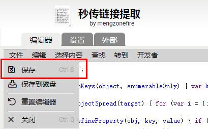 安装好插件后打开Tampermonkey,点击添加新脚本。然后将秒传链接提取.user.js文件拖放到浏览器中,直到代码框中出现代码,然后点击【文件】-【保存】。