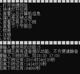 5、查看还有多久下班 【趣味功能】