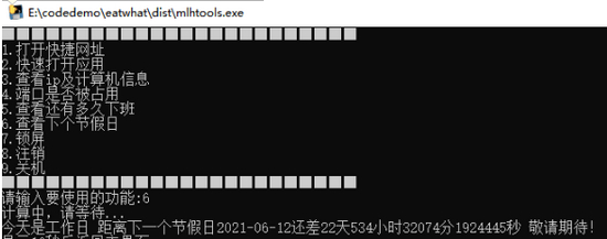 python工作辅助工具箱是一款多功能辅助工具,这款软件功能齐全,可以帮助用户们快速打开收藏的网页,应用软件。也可以帮助用户们去查看端口是否被占用,当然还有最让人期待的查看还有多久下班的必备功能,快来下载体验吧!