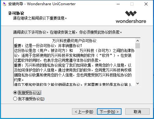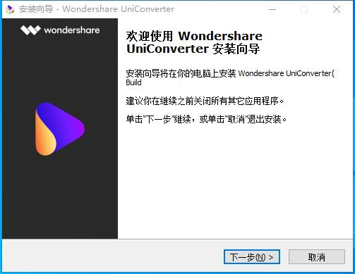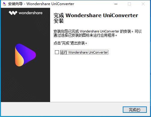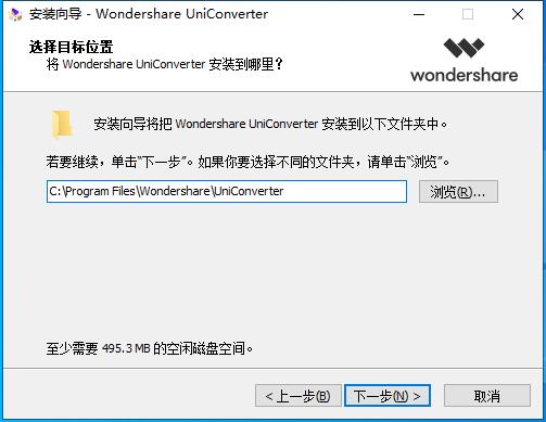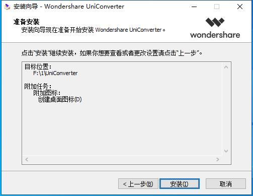 安装向导默认设置的软件默认安装路径为C:Program FilesWondershareUniConverter。
