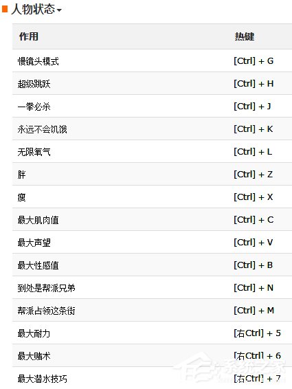 3.修改人物各种属性(肥胖、耐久、肌肉、肺活量、赌博技巧、贺驶技巧、摩托车技巧、脚踏车技巧、飞行技巧、武器熟练度)