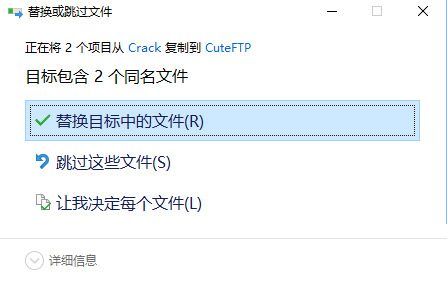 2、将Crack文件拷贝到该目录,点击替换即可。