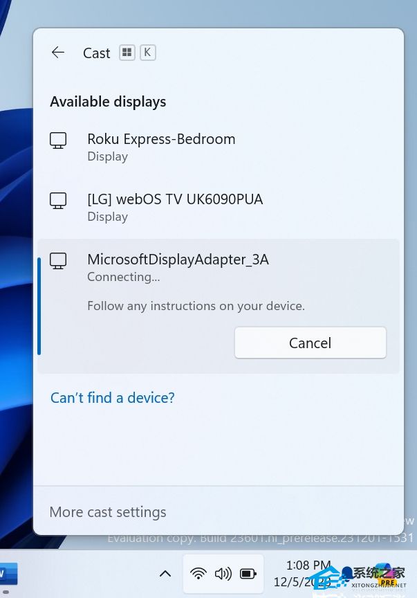 通过 Windows PC 进行投射,您可以将显示器无线扩展到附近的另一台 PC、电视或其他外部显示器。在通过Build 23516与开发者频道中的 Windows Insiders 一起尝试对此体验进行一些改进后,我们对这些改进进行了一些额外的改进,重点是向用户介绍 Cast 功能并提高其在 Windows 11 中的可发现性。这些改进包括: